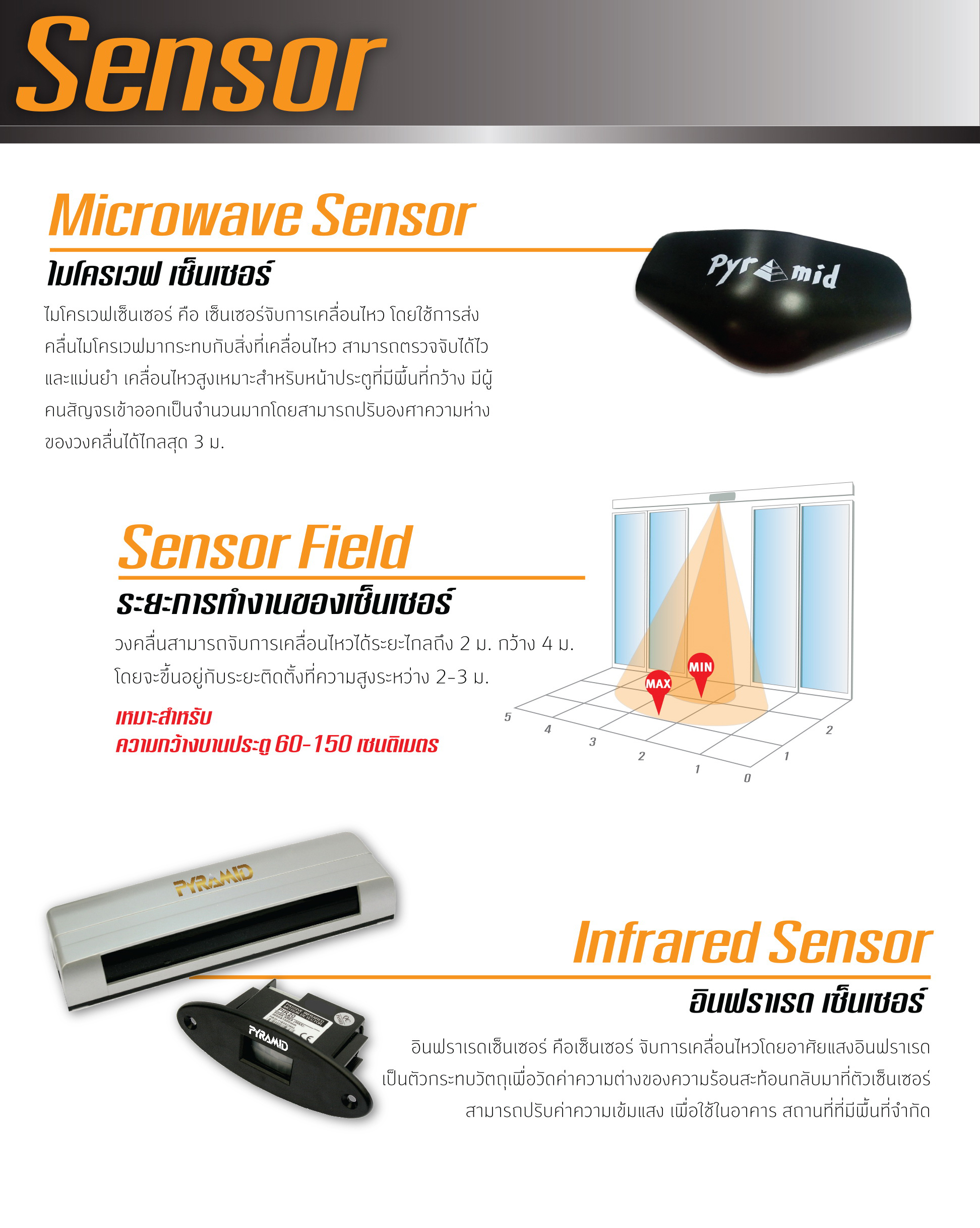 ไมโครเวฟเซ็นเซอร์ คือ เซ็นเซอร์ตรวจจับการเคลื่อนไหว โดยใช้การส่งคลื่นไมโครเวฟมากระทบกับสิ่งที่เคลื่อนไหว สามารถตรวจจับได้ไวและแม่นยำ เคลื่อนไหวสูงเหมาะสำหรับหน้าประตูที่มีพื้นที่กว้าง มีผู้คนสัญจรเข้า-ออก เป็นจำนวนมาก โดยสามารถปรับองศาความห่างของวงคลื่นได้ไกลสุด 3 เมตร.